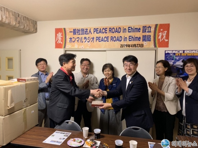일본은 사시미 즉 생선회와 소바의 나라이다. 중간 휴게소를 거쳐 도착한 어느 한적한 마츠야마 유명식당에서 마른메밀로 일본식 메밀을 즐기고 혼마라디오방송국이 있는 에이메현의 마츠야마 ‘PEACE LOVE in 에이메’ 사무실 3층에서 여러 재일교포 여성들과 만나 현지이야기와 교포들의 숨은 이야기로 담소를 나눈다.