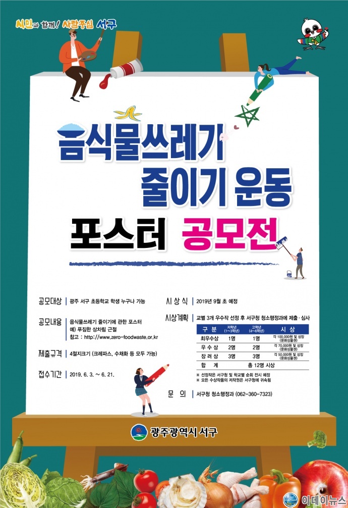 광주 서구(구청장 서대석)가 오는 6월 3일부터 21일까지 관내 초등학생을 대상으로 음식물쓰레기 줄이기 포스터 공모전을 접수한다.