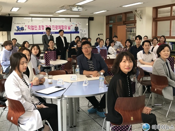 문정여고는 이날 미술작가, 교사, 로봇공학자, 퍼스널컬러컨설턴트 등 26개 영역별로 전문직업인 1명씩을 초청했다.