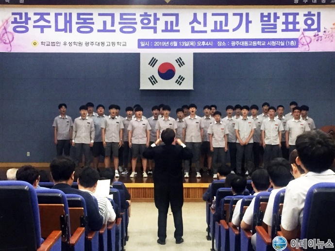 3.1운동과 임시정부수립 100주년을 맞아 친일잔재 청산을 진행 중인 광주대동고등학교가 교가(校歌) 교체작업을 완료하고 13일 ‘신교가 발표회’를 개최했다.