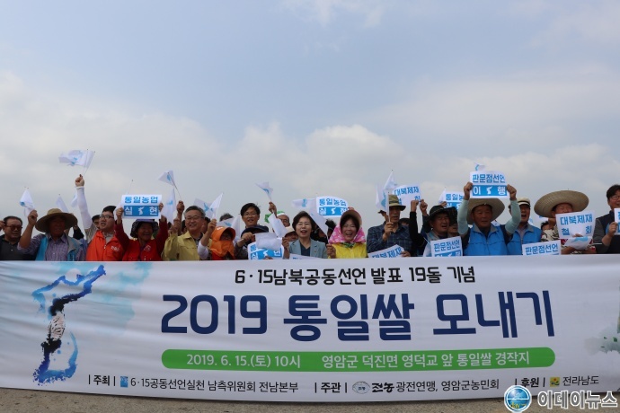 6·15공동선언실천 남측위원회 전남본부(공동 상임대표 고진형민점기)15일 영암 덕진면 통일쌀 경작지에서 도민 등 200여 명이 참석한 가운데 6·15공동선언 19주년 전남 기념식을 개최했다.