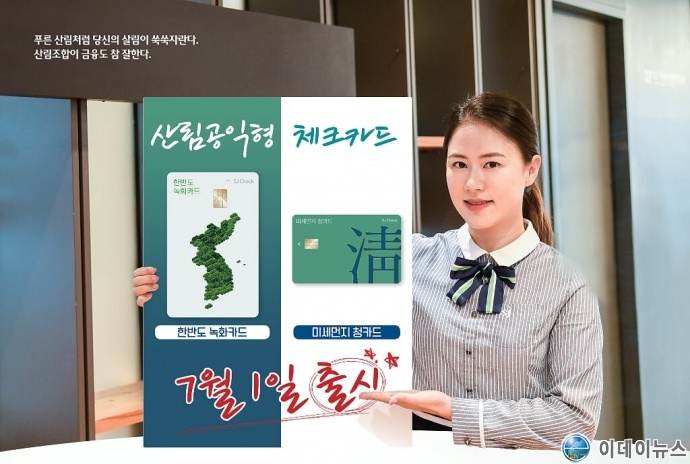 SJ산림조합금융이 카드 프로세싱 전문회사인 BC카드와 대행 계약을 체결하고 7월 1일부터 발급하는 “한반도녹화”카드와 “미세먼지 청(淸)”카드는 이용 수익의 일정부분을 공익 기금으로 적립, 해당 카드가 추구하는 목적에 따라 사용되는 공익형 체크카드다.