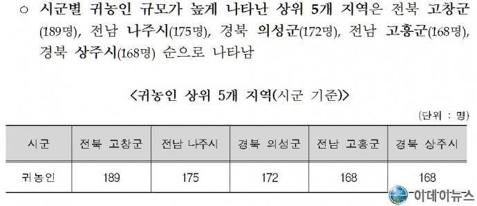 이런 측면에서 고창군은 멘토단 운영, 체류형 농업창업지원센터 등 특화된 귀농귀촌 정책을 펴면서 귀농자들의 초기 실패를 줄이는 데 집중한 점이 호평을 받고 있다.