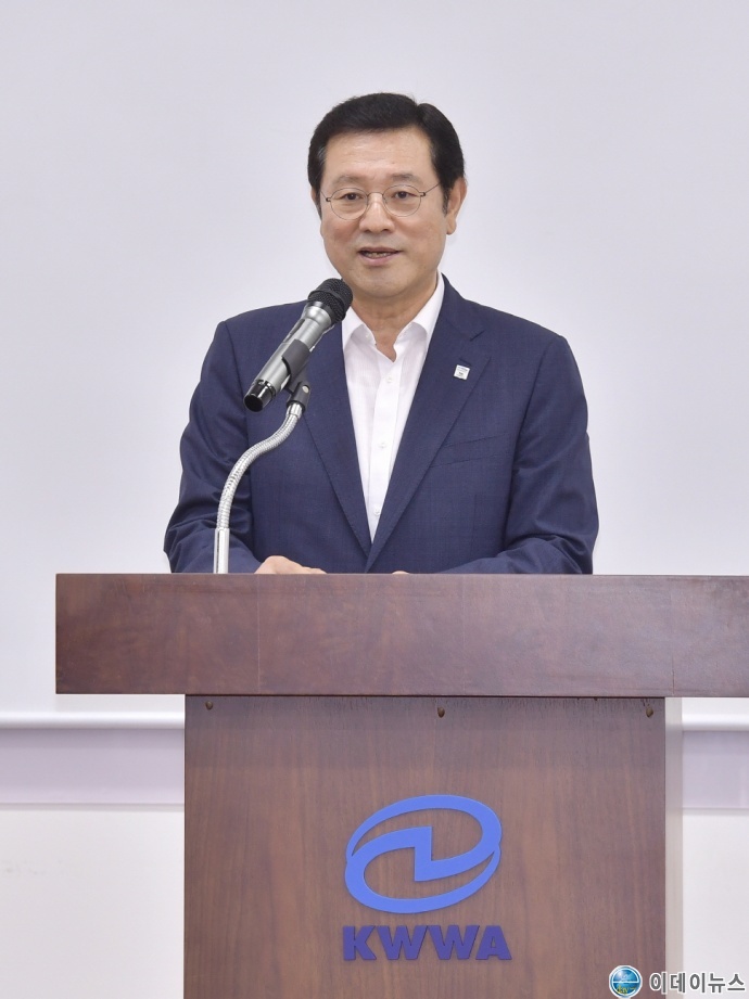 이용섭 시장은 “이런 목적을 달성하기 위해 ‘통즉불통, 불통즉통’이라는 조선시대 명의 허준의 말처럼 변화의 시대에 지속가능한 발전을 보장해주는 ‘혁신’과 혁신역량을 높여주고 상생의 길을 열어주는 ‘소통’ 두 가지를 협회 직원들에게 주문한다”며 “대한민국 국민이라면 누구나 누려야 하는 깨끗하고 안전한 물을 공급받는다는 당연한 권리를 위해 함께 최선을 다하자”고 말했다.