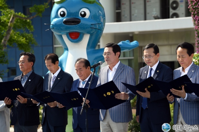 이용섭 광주세계수영선수권대회 조직위원장 겸 광주광역시장, 김동찬 광주광역시의회 의장, 장휘국 광주광역시교육감, 양회창 광주시민사회단체총연합 대표회장과 광주지역 시민사회단체 회원, 시민 등 500여명은 3일 오후 광주시청 앞 잔디광장에서 ‘광주세계수영선수권대회 북한 참가를 요청하는 광주시민 한마음대회’를 열고, 세계수영선수권대회가 평화의 물결이 넘실대는 대회가 되도록 북측 선수단이 참여해 줄 것을 요청했다.