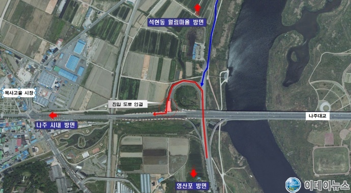 나주시는 영산강 강변도로에서 목사고을시장 등 원도심 시내 방면 진입 연결 도로를 이달 10일 전면 개통한다.