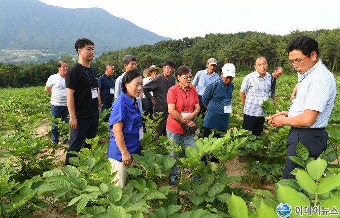 첫째날 오후에는 산세가 수려한 가조면 미녀봉 아래에 위치한 이한구씨(59세) 농가의 독활과 자소엽 계약재배지를 직접 방문하고 친환경 항노화의 고장인 거창의 약초재배 기술을 공유했다.