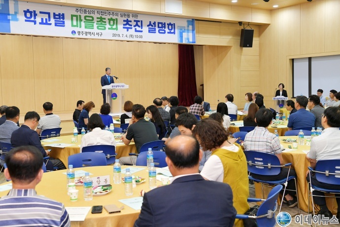 광주 서구(구청장 서대석)는 4일 구청 2층 대회의실에서 주민과 공직자 등 150여명이 참여한 가운데 ‘학교 마을총회 추진과정 설명회’를 개최했다.
