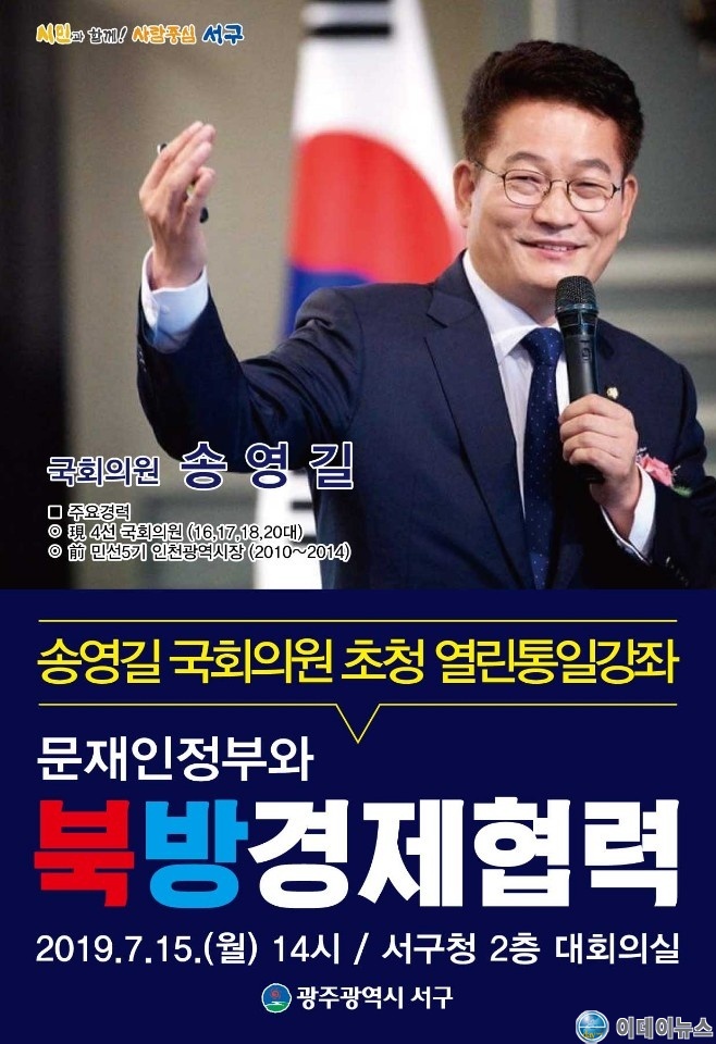 서구청 2층 대회의실에서 개최되는 이번 강좌는 송영길국회의원을 초청‘문재인정부와 북방경제협력’이라는 주제로 진행된다.