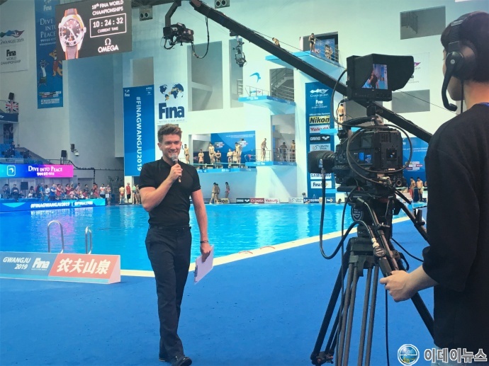 광주세계수영선수권대회 개막 첫 경기인 다이빙 경기가 열리는 남부대 시립국제수영장. 수영장의 청량함처럼 밝고 경쾌한 목소리로 관람객들의 귀를 단번에 사로잡은 사람이 있다.