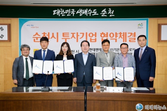 순천시에서는 민선7기 시정 목표인 ‘더 넉넉한 경제도시’를 만들기 위해 투자환경 조성에 용이한 제도개선과 함께 공세적인 투자유치 활동으로 ㈜현대엔테크(대표 오병래), ㈜썬테크(대표 이선휴), ㈜기온테크놀로지(대표 임현미), ㈜카프로코리아(대표 임근택) 4개 기업과 191억원 규모의 투자협약을 이끌어내 107명의 고용을 창출하는 성과를 거두었다.