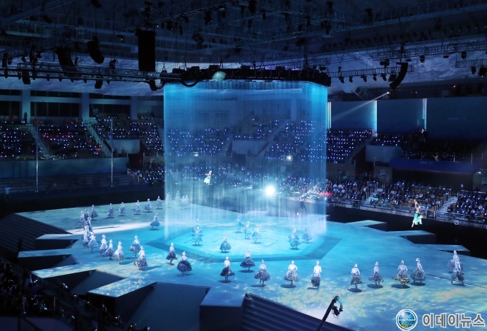 또, 세계적인 디바 소향의 무대가 펼쳐지는 등 우리의 전통가락과 K-POP 인기그룹 등 다양한 장르의 아티스트들이 나와 풍성함을 더해줬다. 이번 개회식은 장소가 실내라는 공간적 특성을 살려 다양한 영상 및 입체효과로 물의 파노라마를 연출됐다.