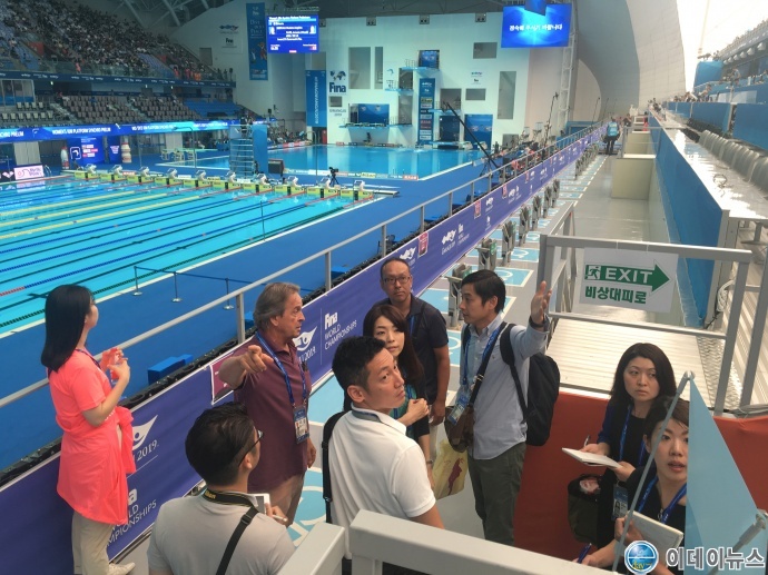 제18회 2019광주세계수영선수권대회가 성황리에 진행되고 있는 가운데 다음 대회 개최지인 일본 후쿠오카 조직위원회가 광주를 방문해 경기장 등 주요시설을 둘러봤다.