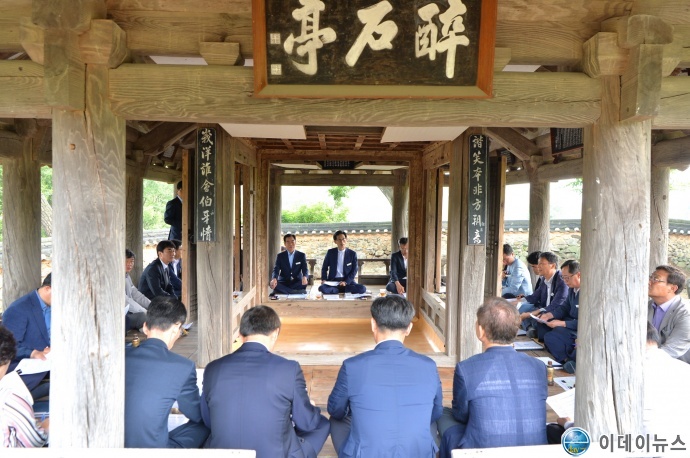 유기상 고창군수와 고창군청 국·과장 30여명이 지역의 옛 정자에서 현안회의를 갖고 지역의 고택과 건축물을 관광 자원으로 육성해 가기로 했다.