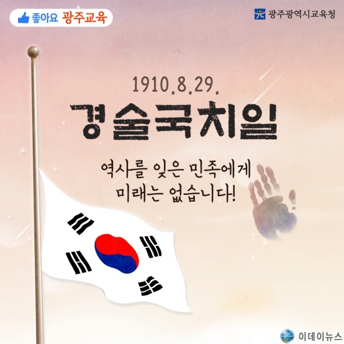 28일 광주광역시교육청(교육감 장휘국)에 따르면 경술국치일인 29일 관내 초‧중‧고등학교는 자율적으로 계기교육을 실시하고 조기를 게양한다.