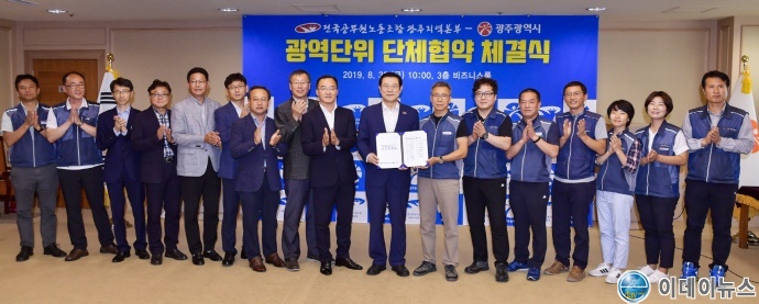 광주광역시와 전국공무원노동조합 광주지역본부는 30일 시청 비즈니스룸에서 5개 자치구를 포함한 시 전체 공직자의 권익 향상과 근무조건 개선, 조직문화 혁신 등을 위한 단체협약을 체결했다.