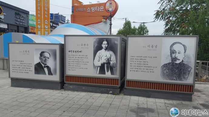 사진 4 천안역 앞의 조병옥· 유관순 · 이동영 사진