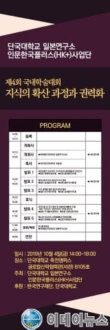 ‘지식 권력의 변천과 동아시아 인문학’이라는 주제로 연구를 수행 중인 단국대학교 일본연구소(소장 허재영) 인문한국플러스(이하 HK+) 사업단은 10월 4일(금) 오후 2시부터 제4회 국내학술대회를 개최한다.