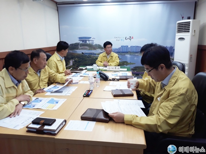 전라남도 나주시는 1일 오전 강인규시장 주재로 시청 영상회의실에서 북상중인 제18호 태풍 ‘미탁’에 대비한 긴급대책회의를 갖고, 피해 최소화를 위한 대처 계획을 점검·논의했다.