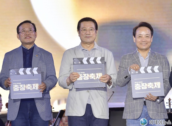 김동찬 광주시의회 의장, 이병훈 광주시문화경제부시장, 임택 동구청장 등 내빈들과 개막 퍼포먼스를 하고 있다.