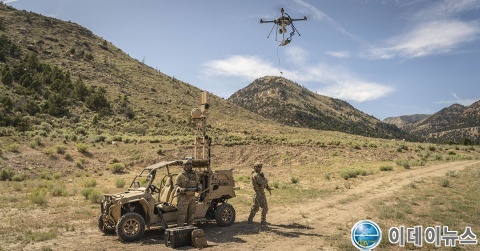 테더드 드론은 지속적인 전원 공급과 안전한 통신을 제공하는 미세섬유 와이어를 통해 기지국이나 차량에 연결된다.