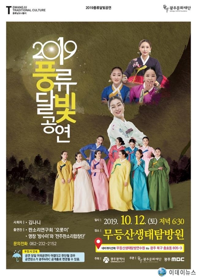 이번 공연은 올해 마지막 공연으로 12일 오후 6시30분 무등산생태탐방원(광주광역시 북구 덕의길 20(충효동))에서 열리며 판소리연구회 ‘오롯이’, ‘방수미와 전주판소리합창단’이 참여한다.