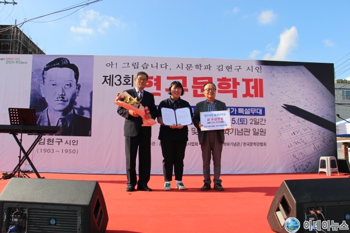김 양은 현구 시인님의 유족들께서 장학금을 주신 것에 감사드린다며항상 시를 사랑하고 꿈을 반드시 실현해 사회를 위해 봉사하는 사람이 되고 싶다고 소감을 밝혔다.