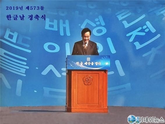 출처 : 행정안전부 > 홈 > 뉴스·소식 > 보도 자료 > 573돌 한글날 경축식 개최 > 2019.10.09. >