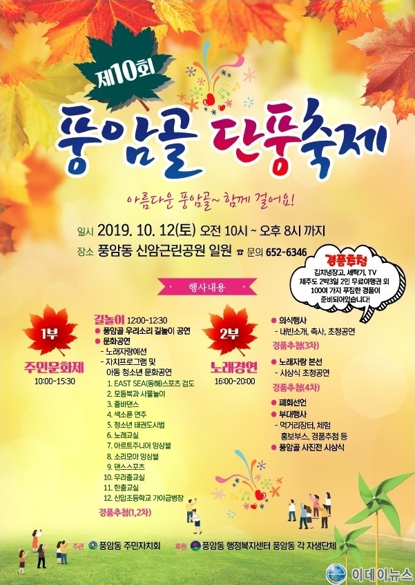 이영수 주민자치회장은 “올해 단풍축제는 보다 많은 주민 여러분들의 참여를 이끌고자 더욱 풍성한 볼거리와 체험행사로 알차게 준비했다.”며 “많은 관심을 가지고 참여해 주시길 바란다.”고 말했다.