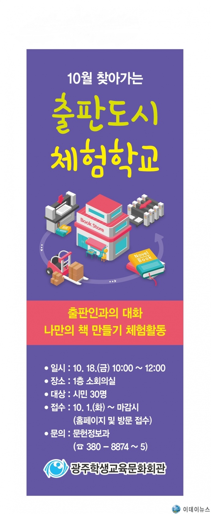 광주학생교육문화회관이 오는 18일 ‘찾아가는 출판도시 체험교실’을 운영한다.