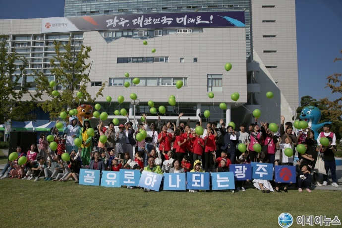 행사에는 지역 공유단체와 공유활동가 130여개 팀, 일반 시민 등 2000여 명이 참석한 가운데 ‘공유로 하나되는 광주’라는 주제로 ▲공유무대 ▲공유의 거리 ▲공유놀이터 ▲공유장터 등 4개 테마(존)으로 진행됐다.