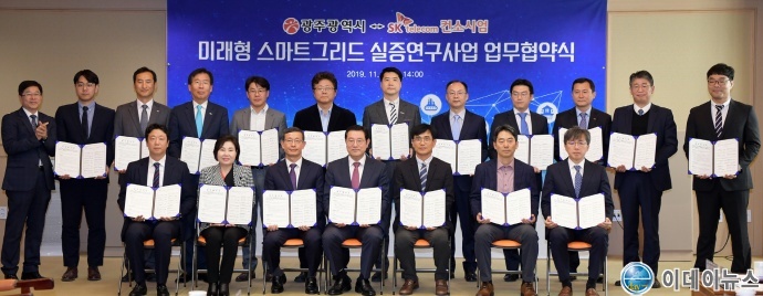 이날 업무협약을 체결한 에스케이텔레콤(SKT) 컨소시엄은 에스케이텔레콤(SKT) 한국전력공사, 현대자동차, 효성, 한국광기술원, 전자부품연구원, 한국 에스지(SG)사업단 등 대기업과 연구기관을 비롯해 그린이엔에스, 라온프렌즈, 대호전기 등 지역 중소기업 총 17개 기관·업체로 구성됐다.