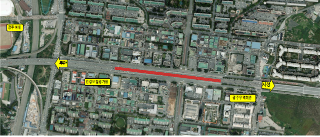 본 공사구간은 무단횡단으로 인한 사망사고 자주 발생하는 곳으로 중앙분리대 교체와 시인성 향상을 위한 노면 재포장 및 재도색 공사를 실시한다.