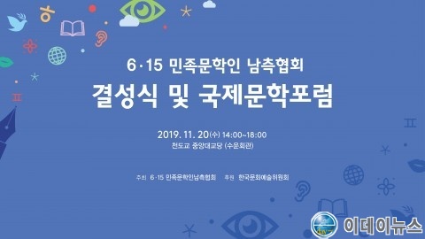 6·15 민족문학인 남측협회(대표회장 이광복(한국문인협회 이사장), 이하 남측협회)는 한국문화예술위원회(위원장 박종관, 이하 예술위)의 후원으로 남측협회 결성식 및 국제문학포럼 [제1세션]을 11월 20일(수) 오후 2시에 서울시 천도교 중앙대교당(수운회관)에서 개최한다.