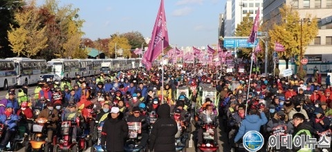 한국지체장애인협회(이하 지장협)는 11월 19일 오후 여의도 국회 앞에서 전국 17개 시도협회 및 산하 230개 지회 회원 3만여명이 참석한 가운데 대규모 ‘장애인 생존권 쟁취 투쟁 결의대회’를 열었다.