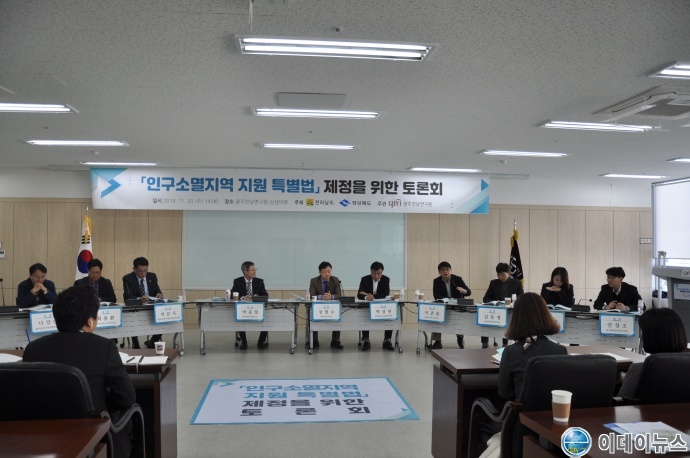 전라남도는 농촌지역 인구 감소 문제 해결을 위해 경상북도와 공동으로 20일 광주전남연구원에서 100여 명이 참석한 가운데 ‘인구소멸지역 지원 특별법’ 제정 필요성과 실효성 있는 법안 마련이란 주제로 토론회를 개최했다.