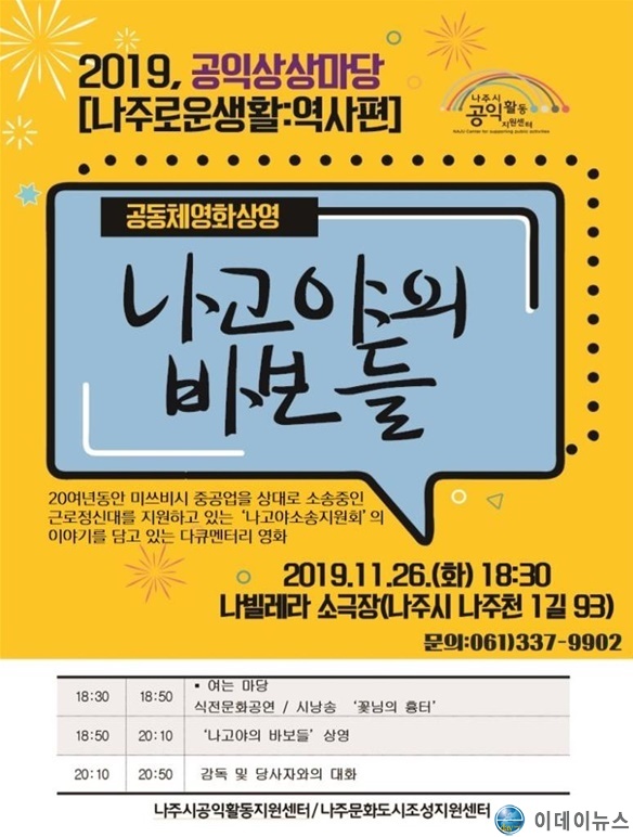 이번 행사에 대한 문의는 나주시공익활동지원센터 사업지원팀(061-337-9902)으로 하면 된다.