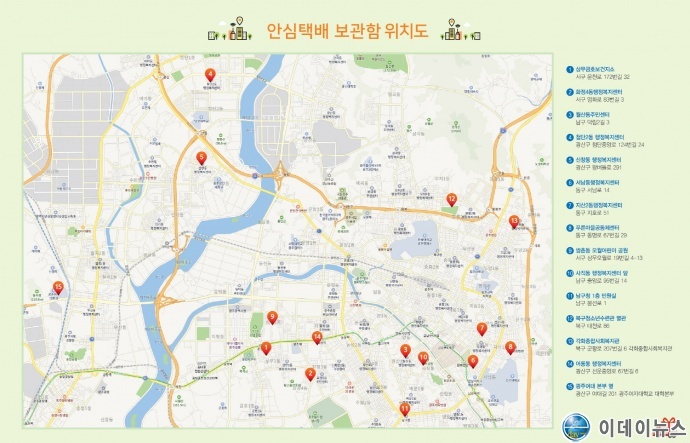 광주시는 1월부터 11월 중순까지 안심택배보관함 8개를 추가로 설치했다. 이에 따라 안심택배보관함은 지난해까지 설치한 5개와 자치구에서 임차해 운영하고 있는 2개 등 총 15개로 늘어났다.