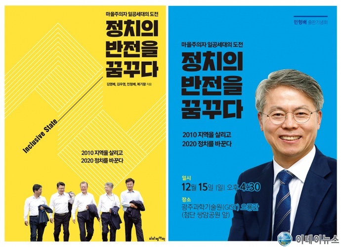 민형배 더불어민주당 광주 광산구(을) 지역위원장이 오는 15일 오후 4시 30분 광주과학기술원 오룡관 다산홀에서 <정치의 반전을 꿈꾸다> 출판기념회를 갖는다.