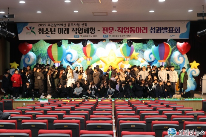 광주북구청소년수련관(관장 강병연)은 『청소년미래직업체험 – 동아리성과발표회』4개 중학교(문흥중, 우산중, 용봉중, 문산중)에 8개 동아리 학생 1,600명을 대상으로 전문동아리(3D프린팅전문가, 드론전문가, 코딩전문가, 컨텐츠크리에이터) 직업동아리(크래프트전문가, 플로리스트, 요리전문가, 퍼스널뷰티전문가) 과정으로 한학기 동안 운영하였다.