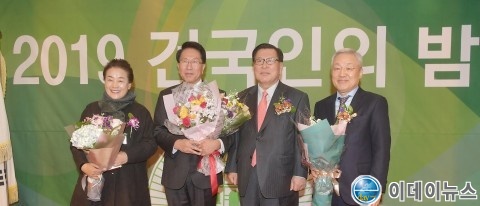 건국대학교 총동문회(회장 이윤보)가 주최한 ‘2019 건국인의 밤’ 행사가 5일 오후 건국대 동문회관에서 전임 총동문회장 등 동문회 임원, 유자은 학교법인 이사장과 법인 임직원, 임융호 교학부총장과 문흥안 대외부총장 및 교무위원, 조용호 전 헌법재판관(로스쿨 석좌교수), 강훈식 국회의원(경영정보 94) 등 각계 동문과 건국 가족 500여명이 참석한 가운데 개최됐다.