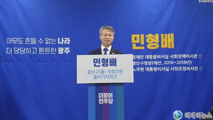 민 전 비서관은 9일 오전 광주광역시의회 3층 브리핑룸에서 출마기자회견을 갖고 “내년 제21대 국회의원선거에 광산구을 선거구(수완동·신창동·신가동·첨단1동·첨단2동·하남동·비아동·임곡동)에 더불어민주당 후보로 출마한다”고 밝혔다.