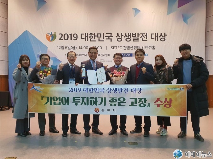 순천시는 지난 12월 6일(금) 지역간 경제‧기술‧인적 교류 활성화를 통한 지자체 상생발전의 발판 마련을 위해 제정된 ‘2019 대한민국 상생발전 대상’에서 기업 부문 ‘기업이 투자하기 좋은 고장’을 수상하였다.