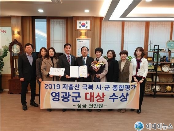 영광군은 지난 11일 전라남도에서 실시한 2019 저출산 극복 종합평가에서 시군 1위로 대상 수상과 함께 시상금 1천만 원을 받았다.