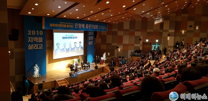 민형배 전 광산구청장이 김영배·김우영·복기왕 전 비서관과 함께 쓴 ‘정치의 반전을 꿈꾸다’ 출판기념회가 15일 광주과학기술원 오룡관에서 시민 6천여 명이 참석한 가운데 성황리에 개최됐다.