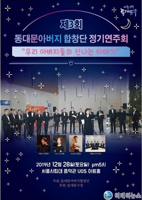 유덕열 동대문구청장은 “아버지들이 들려주는 아름다운 노래 들으시면서 올 한 해 마무리 잘 하시기 바란다”며, “새해에도 다양한 문화예술이 가득한 동대문구를 만들어 나가겠다”고 밝혔다.