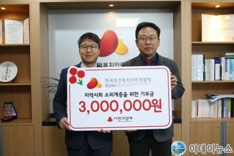 한국보건복지인력개발원(원장 허선, 이하 인력개발원)은 2019년 12월 31일 공공기관의 사회적 책임과 소외계층 나눔 문화 실천을 위하여 충청북도 사회복지공동모금회, 오송종합사회복지관 등 4곳에 사회공헌기금 기부금을 전달했다.