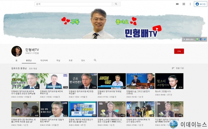 선거운동을 목적으로 운영 중인 유튜브 채널 중에서 구독자가 가장 많은 ‘민형배TV’(http://edaynews.comhttps://www.youtube.com/channel/UC1M1iWQhaGvAoVuKDEPrJTQ/featured)는 지난 8월말부터 본격적인 운영을 시작해 1,170여 명의 구독자를 확보했으며 ‘민형배의 정치브리핑-조국 전 장관 편’이 조회수 3,500여 회를 기록하고 있다.