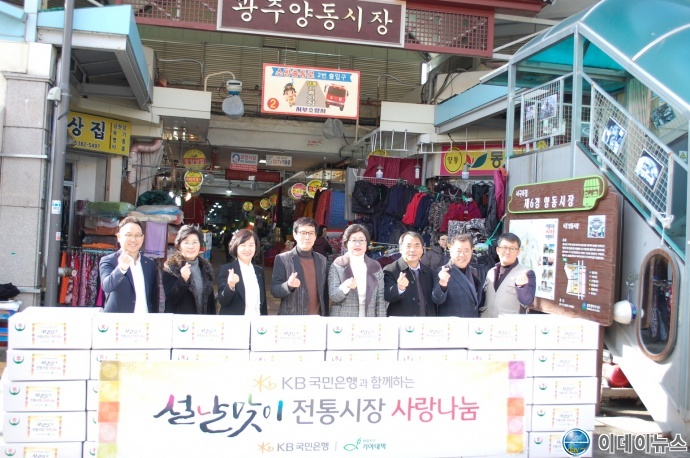 광주광역시는 16일 KB국민은행 호남지역영업그룹과 양동시장에서 저소득 가정을 위한 ‘설맞이 전통시장 사랑나눔 행사’를 진행했다.