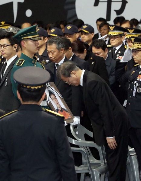문 대통령은 자유한국당 황교안 대표 등과 악수한 뒤 순직대원 구조 및 수색활동에 참여한 해경과 해군 장병들을 격려하고 행사장을 떠났다.